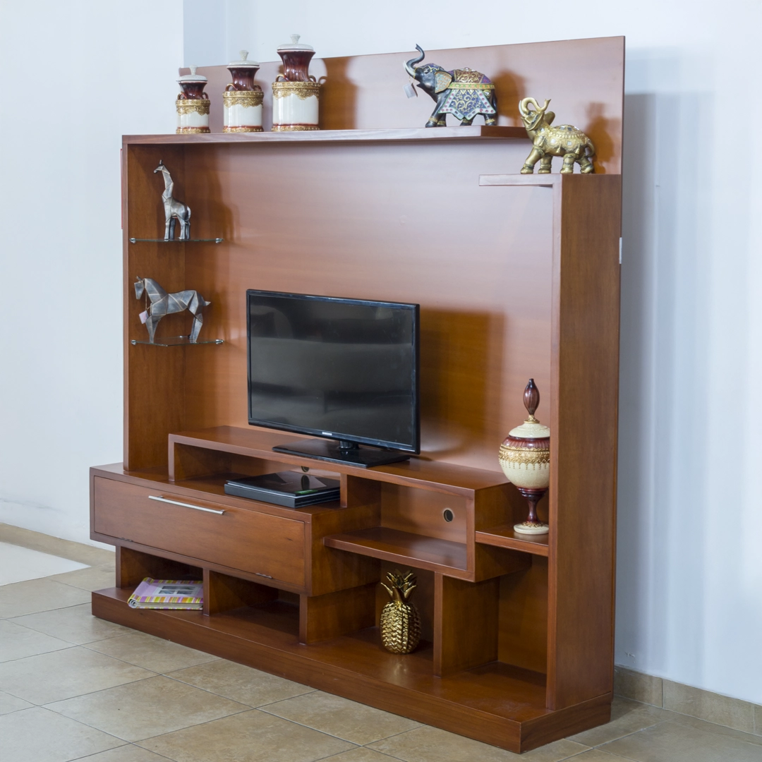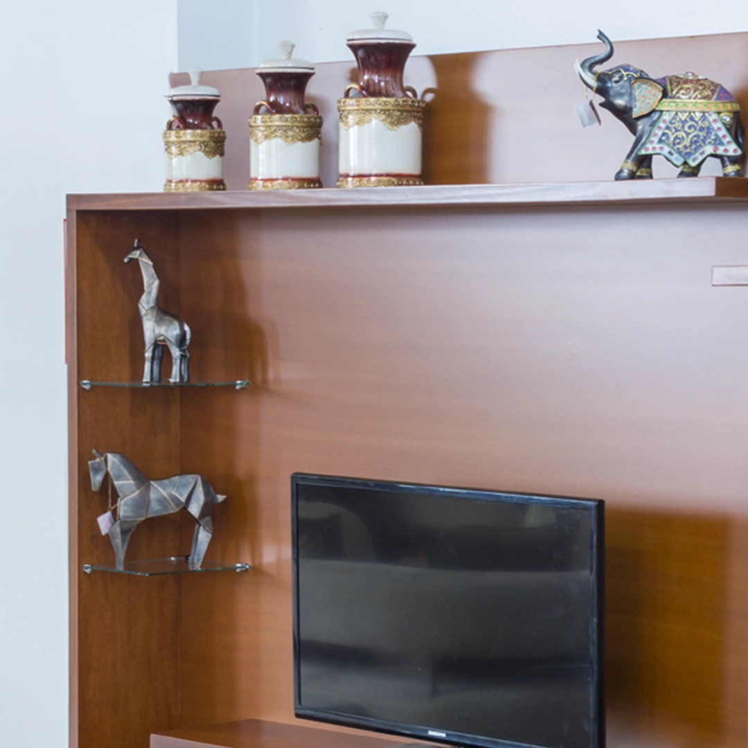 Gracias a su sólida estructura, el Mueble de TV Italia puede soportar televisores plasma o LED de hasta 60 pulgadas, brindando una base estable y elegante que se convierte en el punto focal de tu sala.