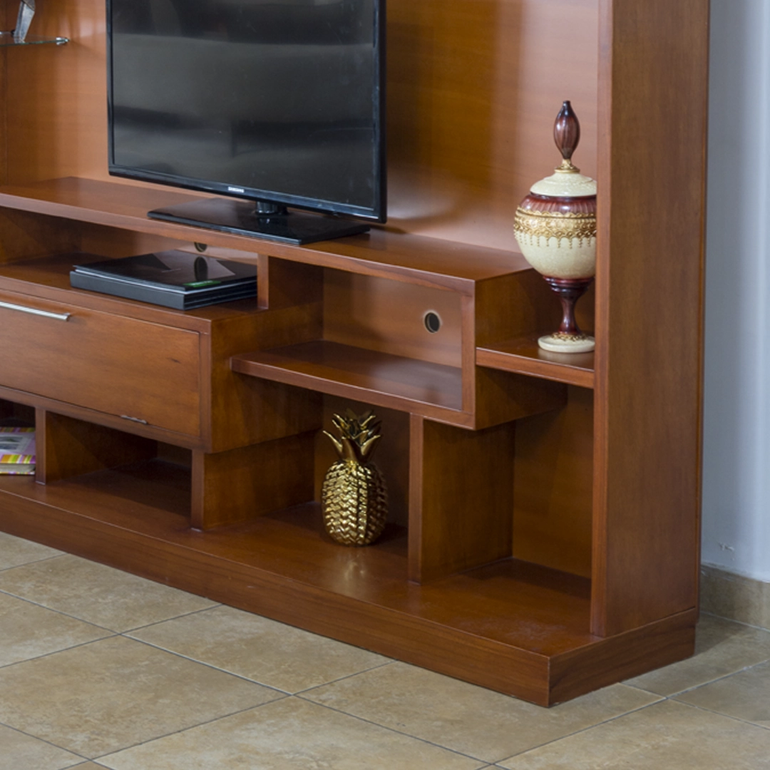 Cuenta con dos divisiones ideales para una barra de sonido y decodificador, además de compartimientos abiertos perfectos para adornos, libros o figuras decorativas. Su diseño versátil se adapta fácilmente a distintos estilos de decoración: minimalista, contemporáneo o moderno natural.
