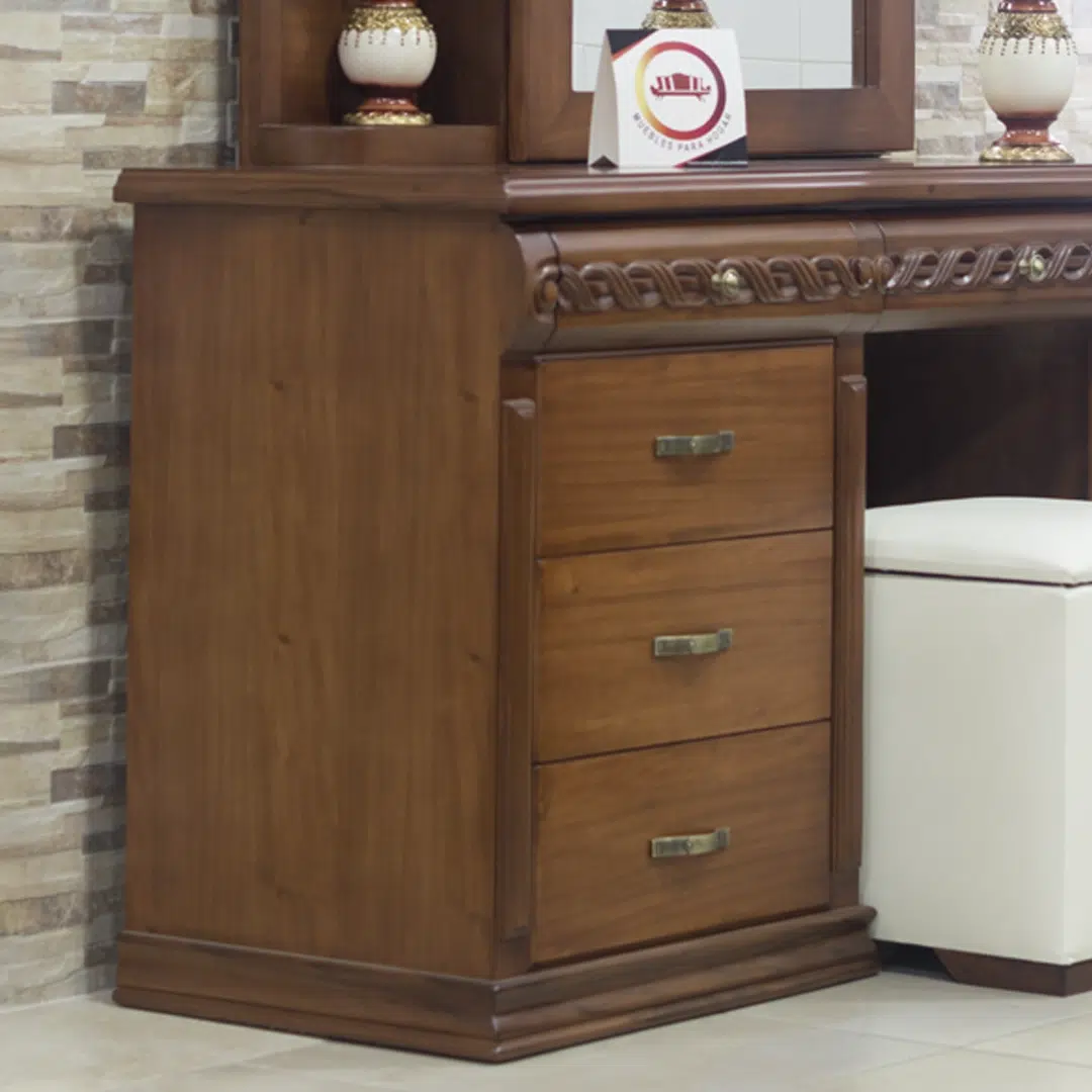 Fabricada artesanalmente en Ecuador por ebanistas expertos, la Peinadora Boston es una pieza única que aporta distinción y practicidad a tu espacio personal.