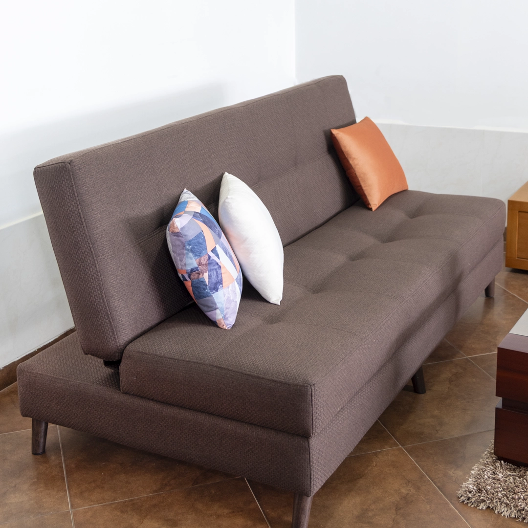 El Sofá Cama Isabella incluye 3 cojines decorativos personalizables, que complementan su diseño y aportan un toque acogedor.